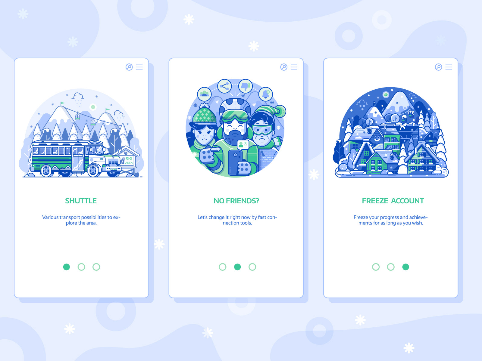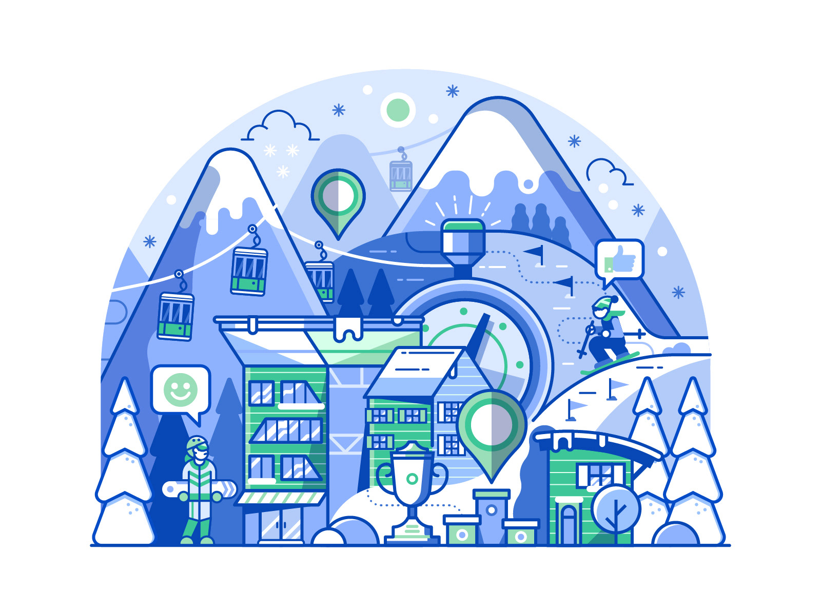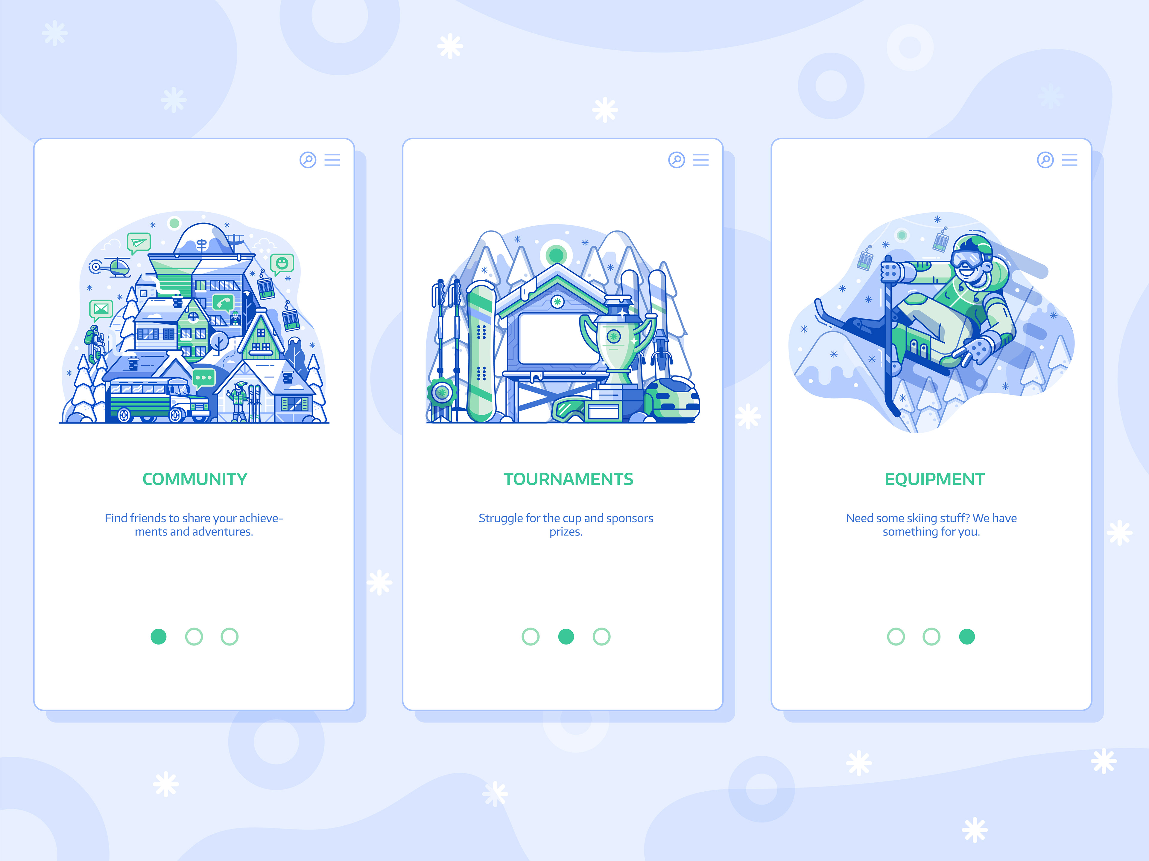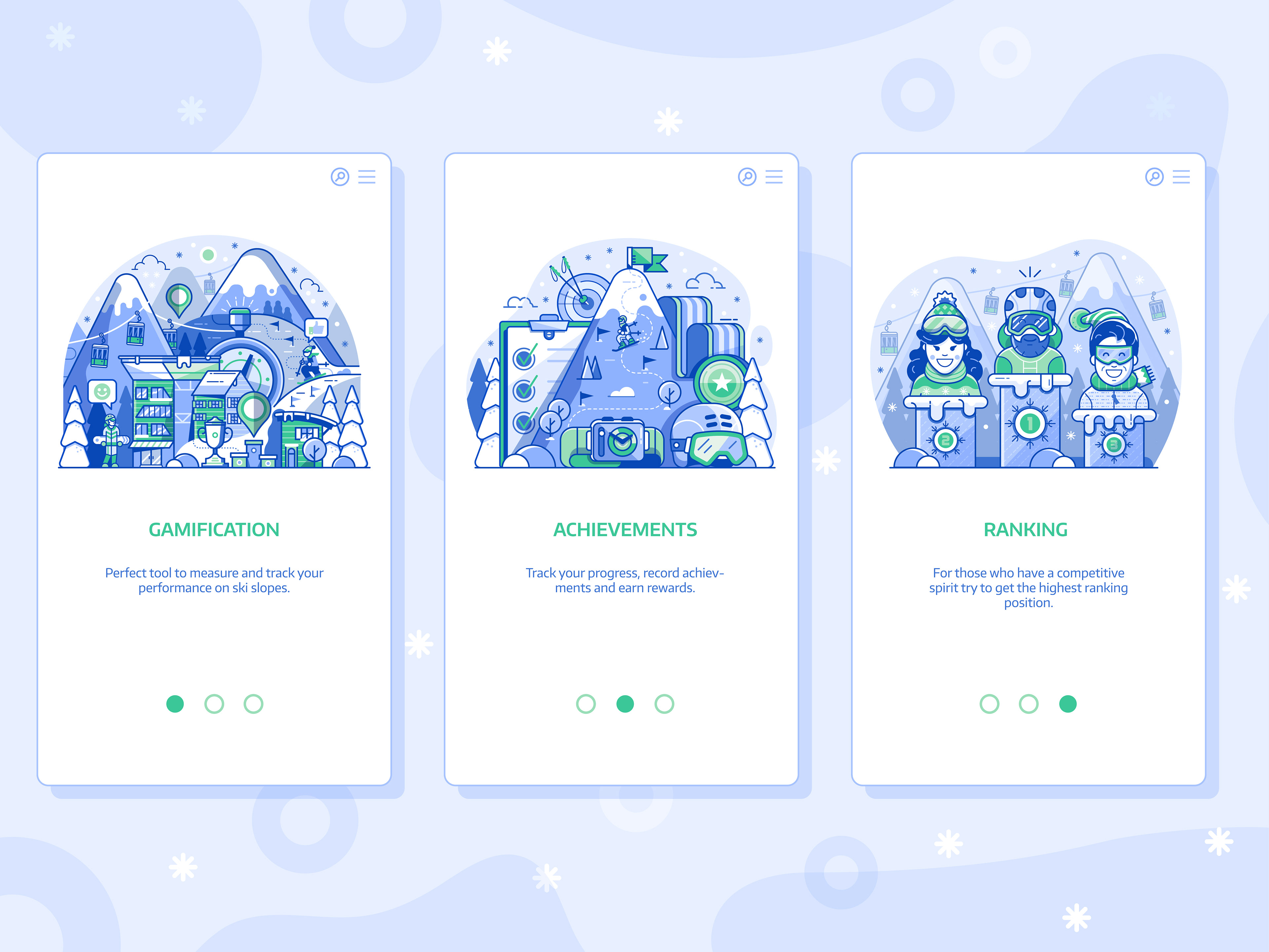Spot illustrations created for Polish gamification application for winter sports lovers.