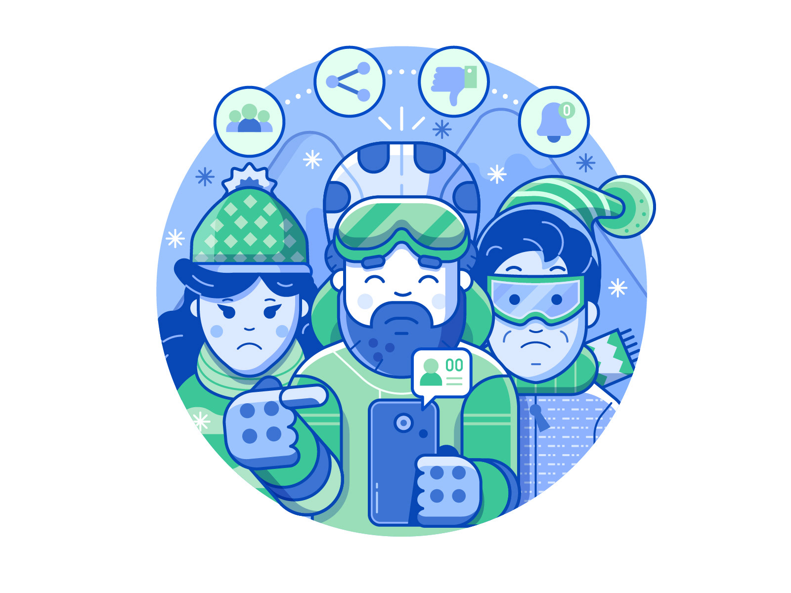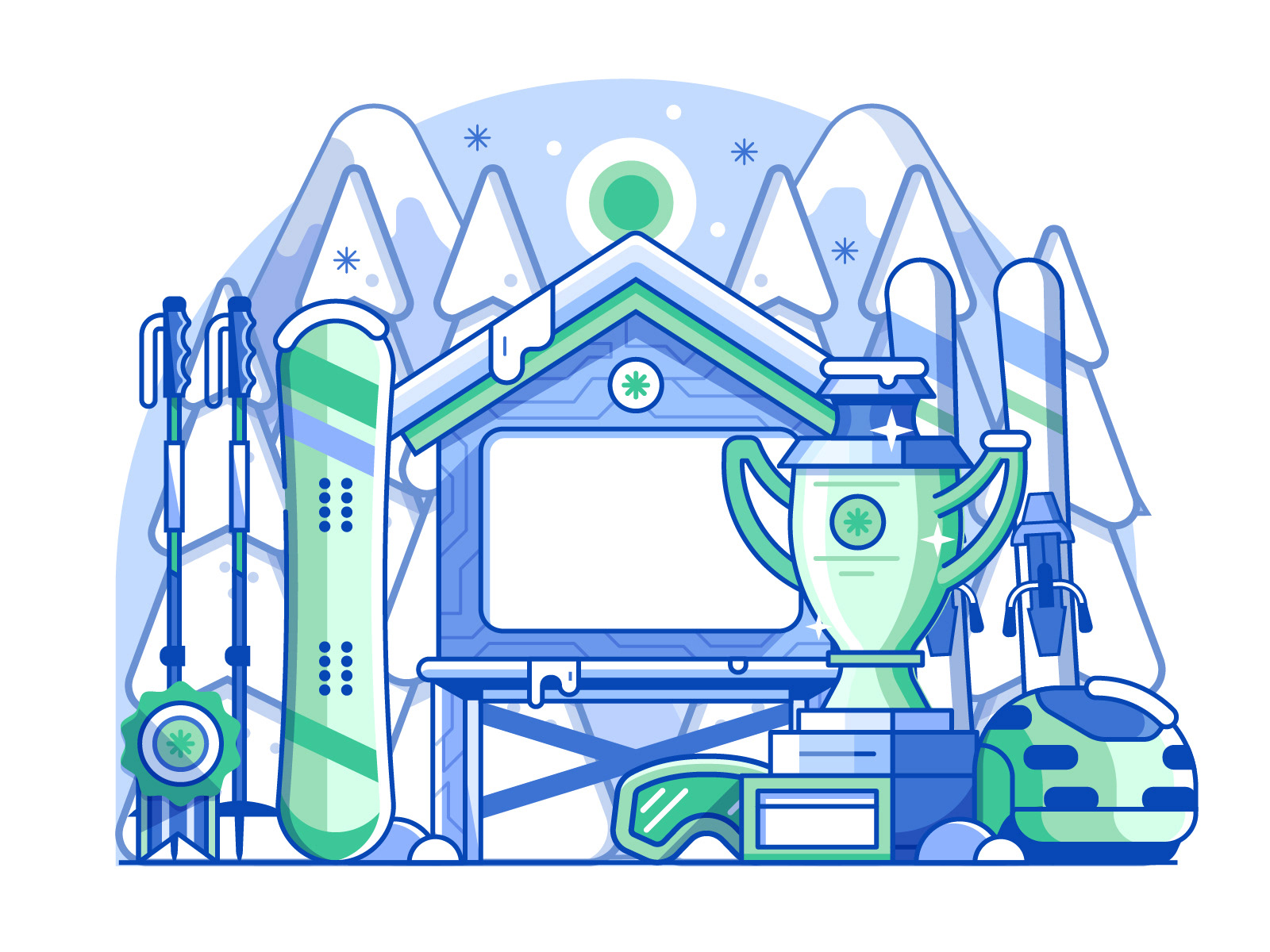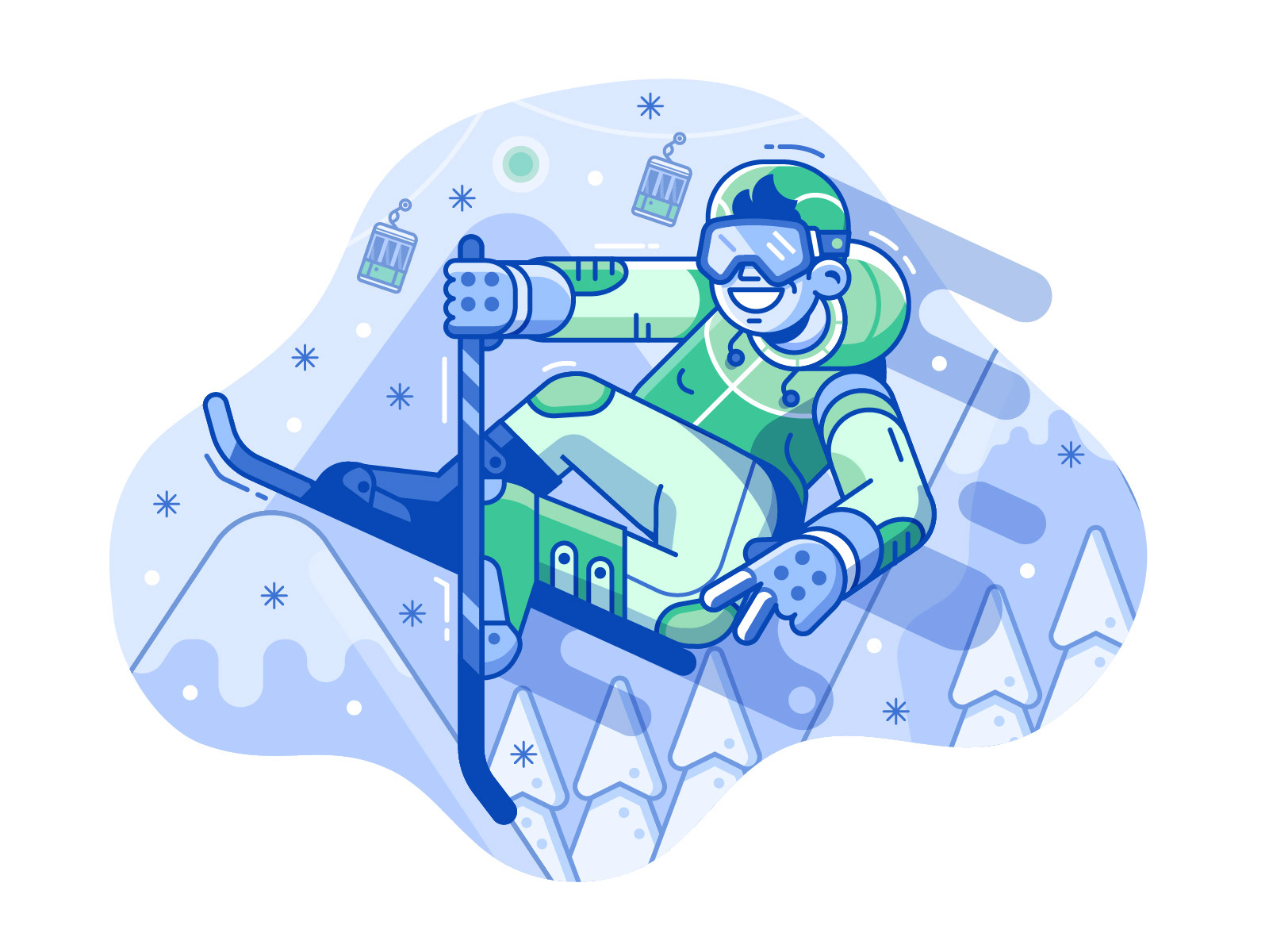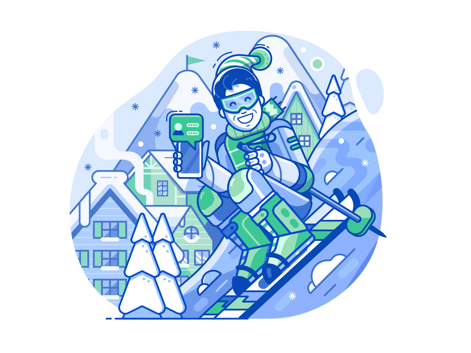 Spot illustrations created for Polish gamification application for winter sports lovers.
